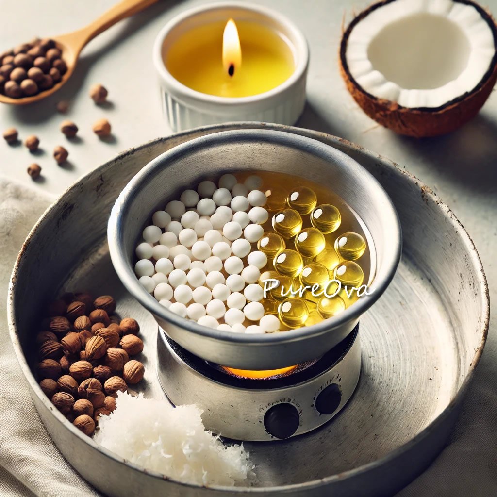 - Step 1: Melt the Candelilla Wax, shea butter, and coconut oil in a double boiler.